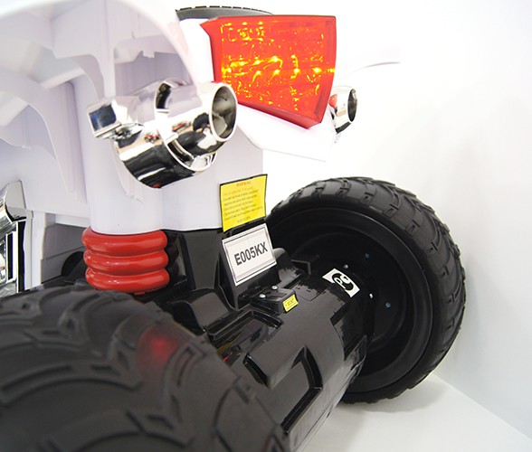 Детский электрический квадроцикл Е005КХ отлично подойдет для детей от 1 до 6 лет. Он выполнен из качественных материалов, которые не имеют запаха. Квадроцикл оснащен множеством световых и звуковых эффектов. К медиа панели можно подключать телефон в AUX вход и давать ребёнку прослушивать его любимые песни прямо на квадроцикле, регулируя при этом громкость, регулятором встроенным в медиа панель.