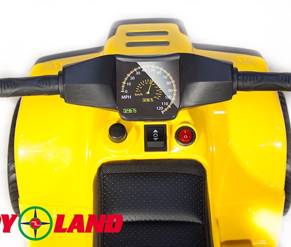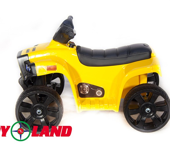 Небольшой электроквадроцикл JC912, с яркими расцветками, который подойдет для детей в возрастной категории до 5 лет. Он оснащен одним моторчиком, мощность которого составляет 20 Вт, питающийся от батареи 6V/4.5Ah. Детский квадроцикл развивает скорость до 4 км/ч.