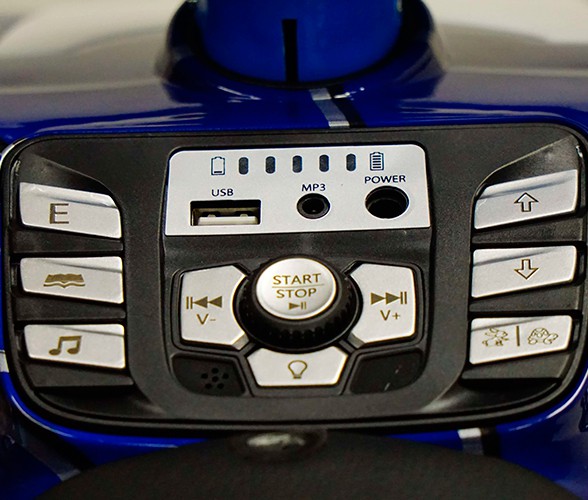 Световые эффекты квадроцикла представлены передними фарами, а звуковые — встроенными заводскими мелодиями. Для плавности езды предусмотрены амортизаторы и каучуковые колеса, что в совокупности с кожаным сиденьем, сделает езду малыша комфортной.