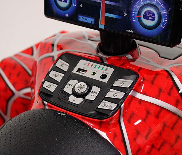 Электро квадроцикл T777TT с кнопки, имеет индикатор заряда. В плане развлечений он оснащен входами для флешки USB, AUX и подключается по блютуз к телефону, что без труда позволит проигрывать любимые треки малыша.
