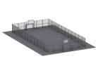 Габариты 30000×15000 мм позволяют организовать полноценное игровое поле с необходимыми зонами безопасности. Конструкция ориентирована на интенсивную эксплуатацию и соответствует требованиям к современным спортивным объектам.