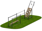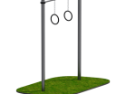 Перекладина выполнена из стальной трубы диаметром 34 мм и крепится к стойкам при помощи стальных хомутов, обеспечивающих надёжную фиксацию и устойчивость к динамическим нагрузкам. Металлические гимнастические кольца рассчитаны на интенсивное использование и устойчивы к износу.