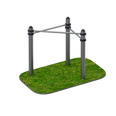 Конструкция также позволяет выполнять отжимания на перекладинах, что дополнительно развивает мышцы плечевого пояса и корпуса. Комплекс востребован на школьных и дворовых площадках, в парках, а также в зонах воркаута, где важно обеспечить высокую пропускную способность оборудования при компактных габаритах.