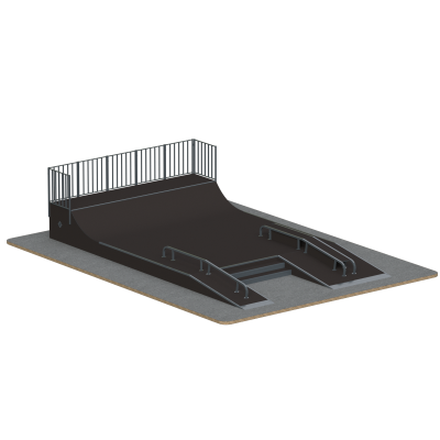 Рейлы выполнены из стальной трубы диаметром 48 мм — оптимального размера для выполнения скольжений и технических элементов. Окантовка прямых граней усилена стальным уголком 50 мм, что повышает износостойкость и сохраняет геометрию граней при интенсивной эксплуатации.