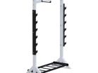 В конструкции предусмотрены 2 накопителя и 1 полка для хранения дисков, а также 6 ловушек для размещения штанговых грифов. Все металлические элементы окрашены порошковой термоотверждаемой краской, устойчивой к механическим повреждениям и коррозии, что гарантирует долговечность оборудования при интенсивной эксплуатации.